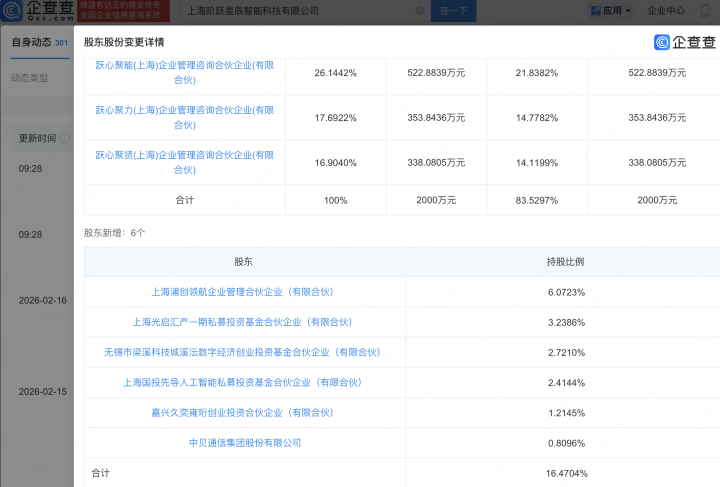 正规的配资平台有哪些上海阶跃星辰智能科技有限公司发生工商变更 正规的配资平台有哪些 来源:网络配资炒股 网站:a股配资,申请股票杠杆,股票市场配资平台 日期:2026-02-28 06:03:05 查看:118