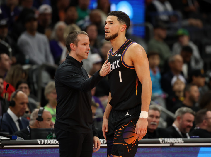 布克全场出战35分20秒,21投10中(三分12中5)、罚球8中7,轰下全场最高32分外加4篮板4助攻2抢断,4次失误瑕不掩瑜,正负值+1。